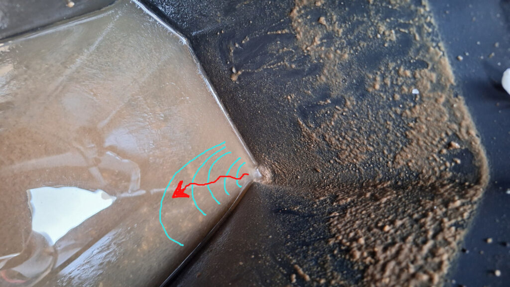 あ!本当ですね!?角の所からチョロチョロ水が湧いてます。