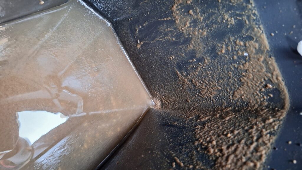次に、シリコーンが粘着しやすくするために、ブラシで消毒槽の底部や側面を擦ります。