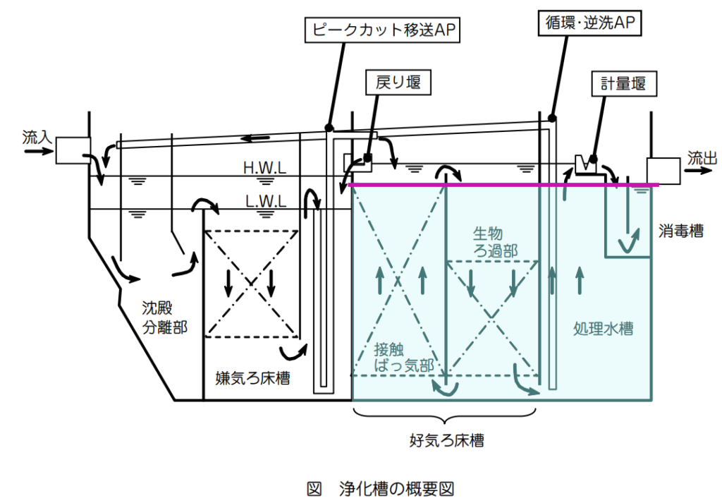 好気ろ床槽や処理水槽の水位が下がってしまうってことは、